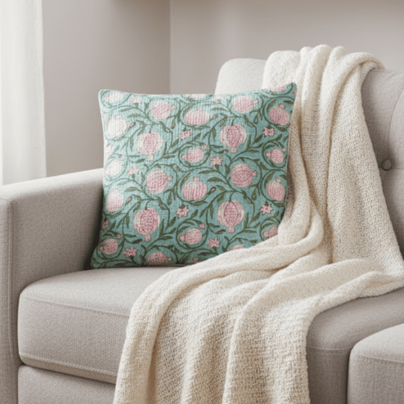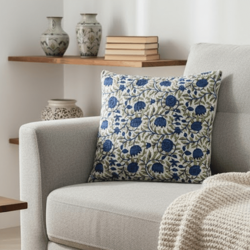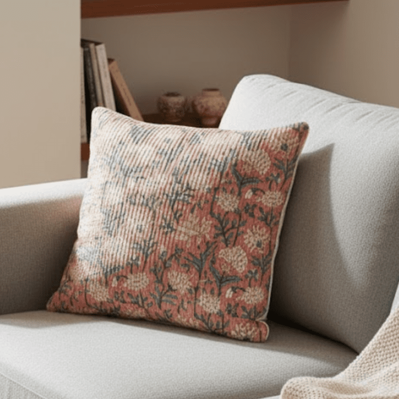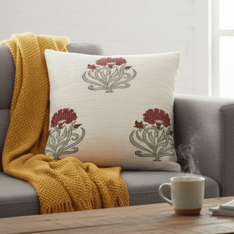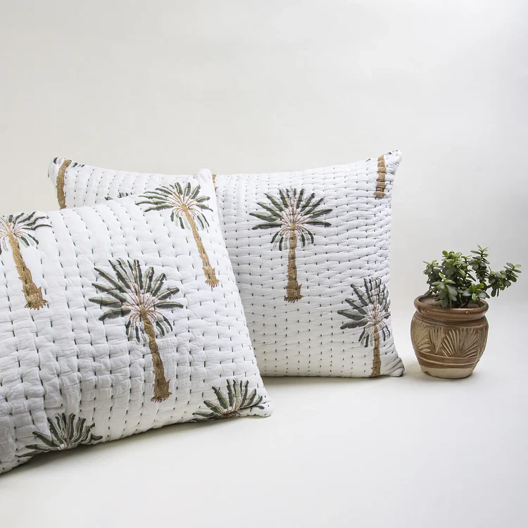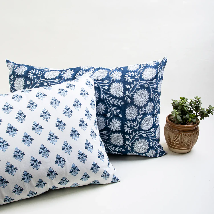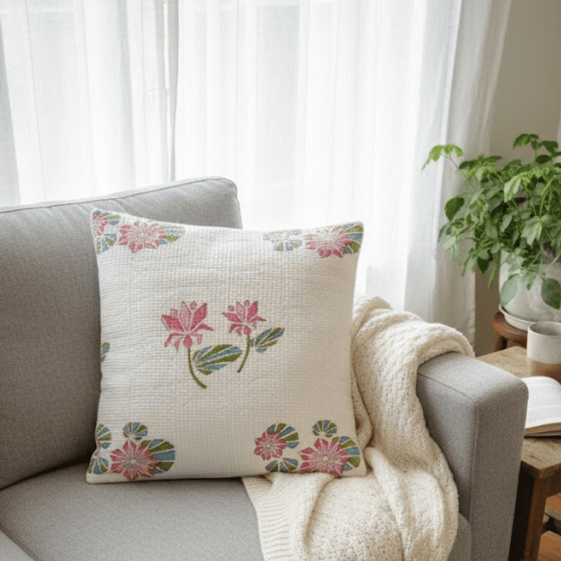 Handmade Block Print Pure Cotton Quilted Pillowcase