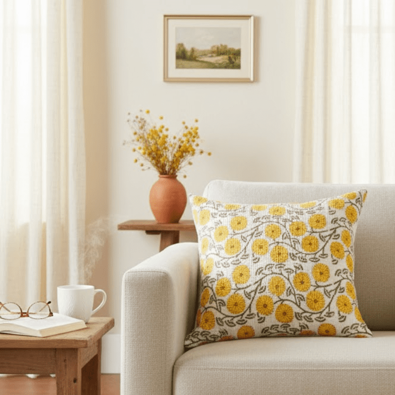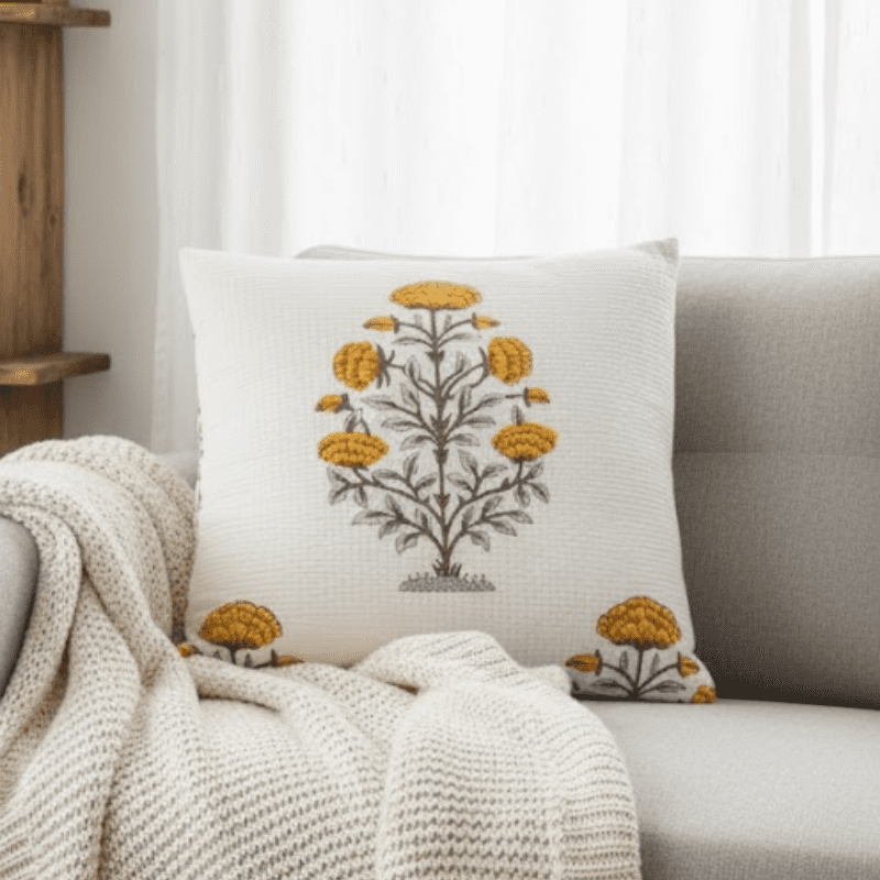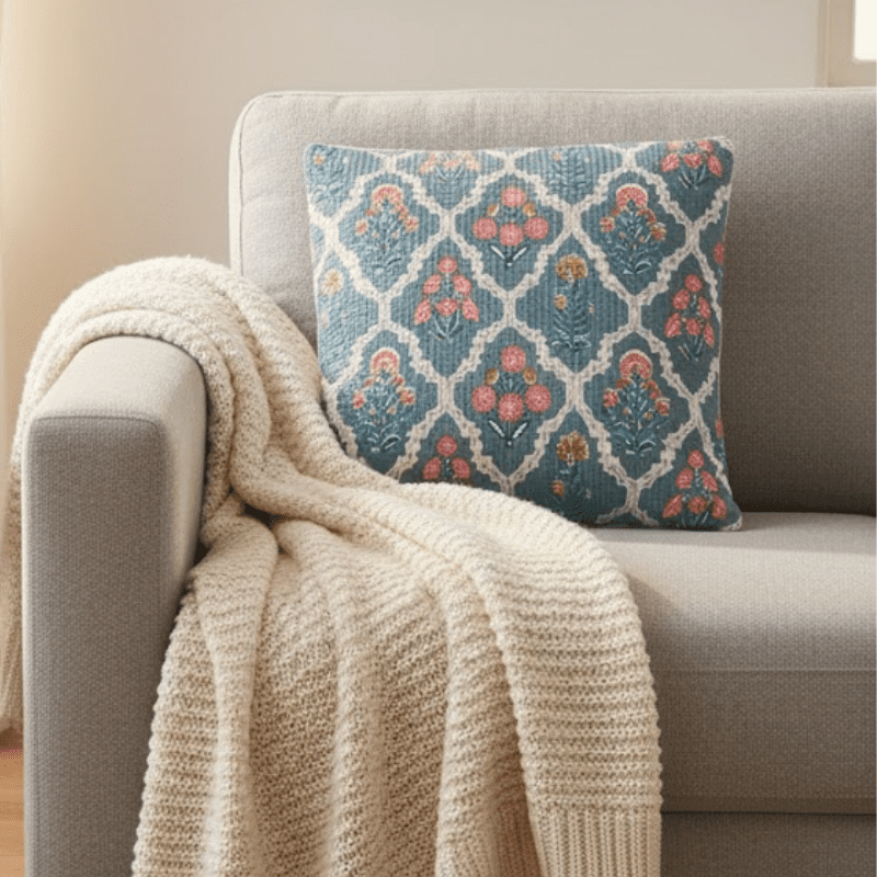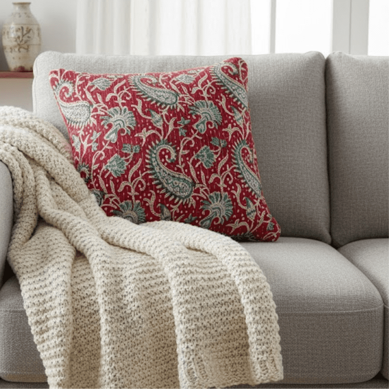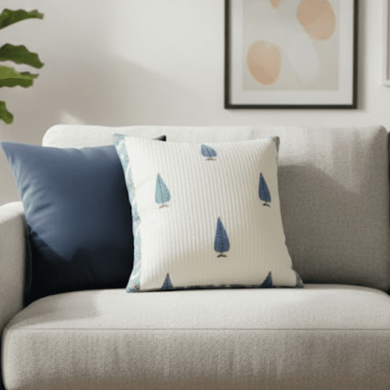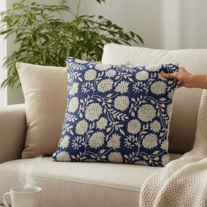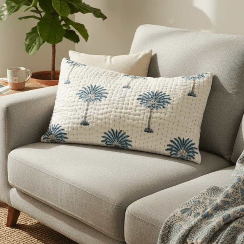 Handmade Block Print Pure Cotton Quilted Pillowcase