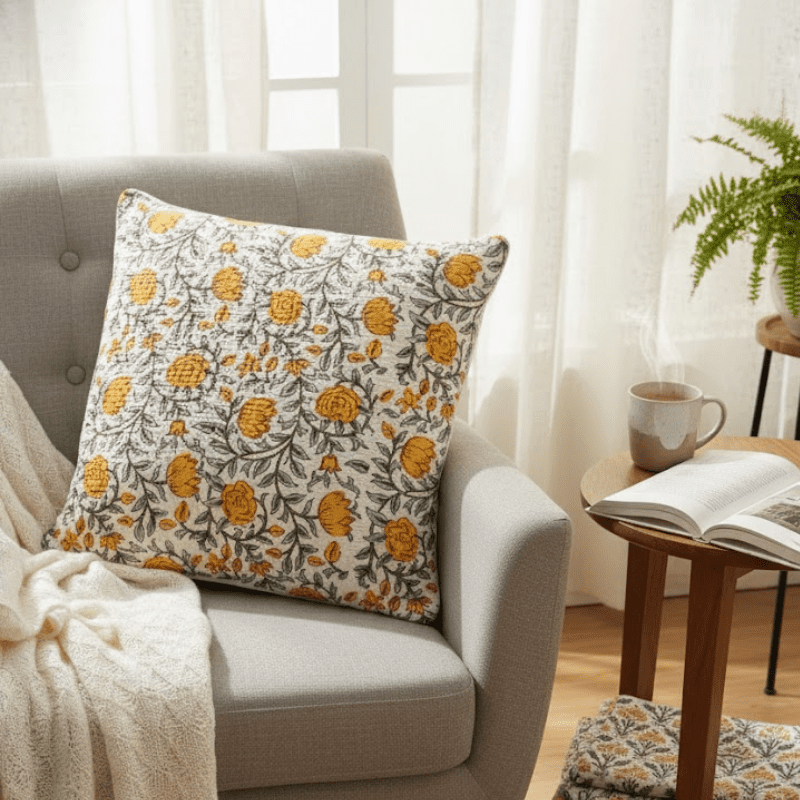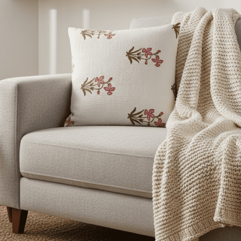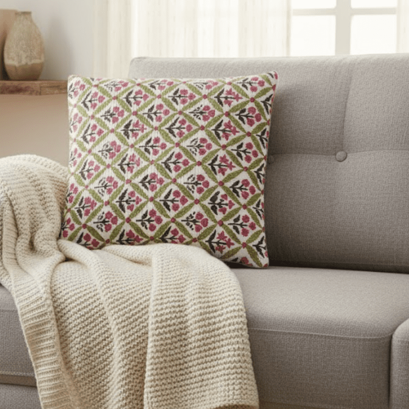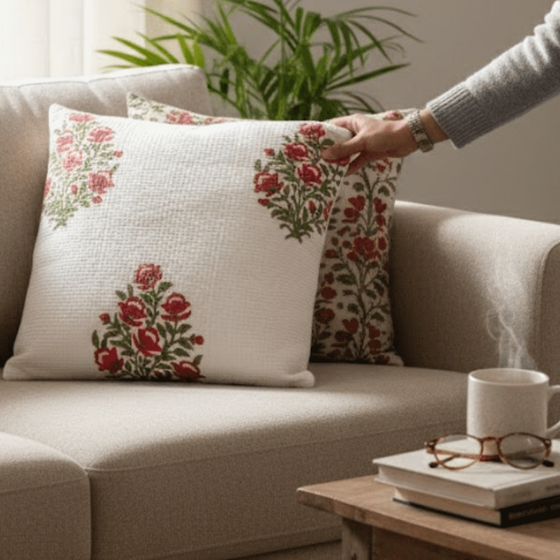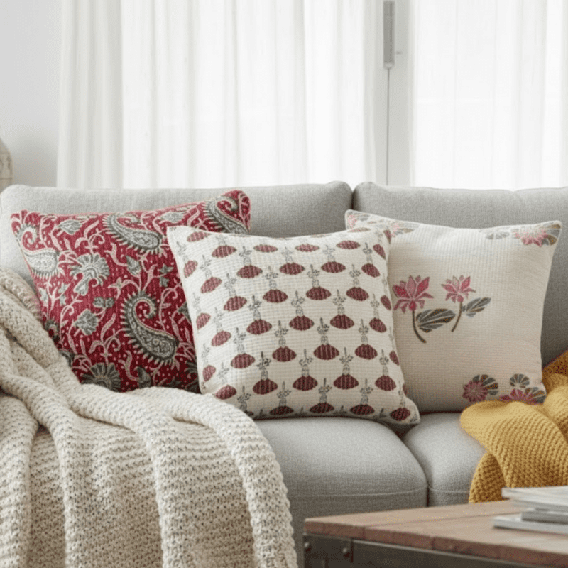 Hand Block Print Raw Linen Cushion Covers – Set of 2