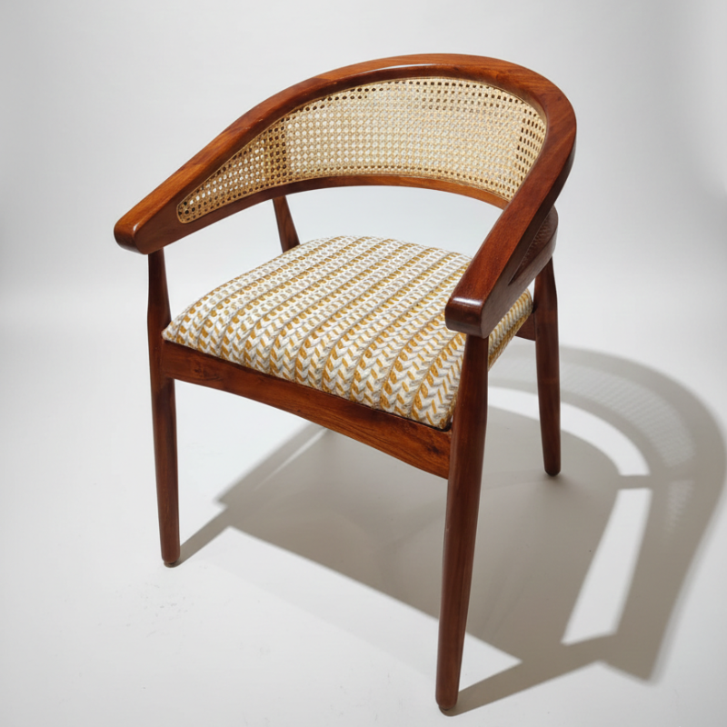Bring home effortless elegance with our Wood Rattan Chair, a handcrafted piece that blends natural materials with timeless design. Made from sturdy mango wood and handwoven rattan, this chair offers comfort, durability, and an earthy vibe that feels both relaxed and refined. Perfect for a veranda, living room corner, or cozy reading nook, its breathable rattan back and soft cotton cushion make it ideal for everyday use. Pinterest-worthy and versatile, this handcrafted wooden rattan chair adds warmth, texture, and artisanal charm to modern and traditional homes alike. Proudly handmade in India.