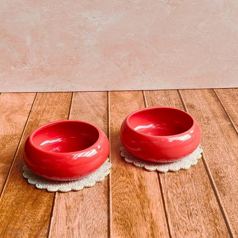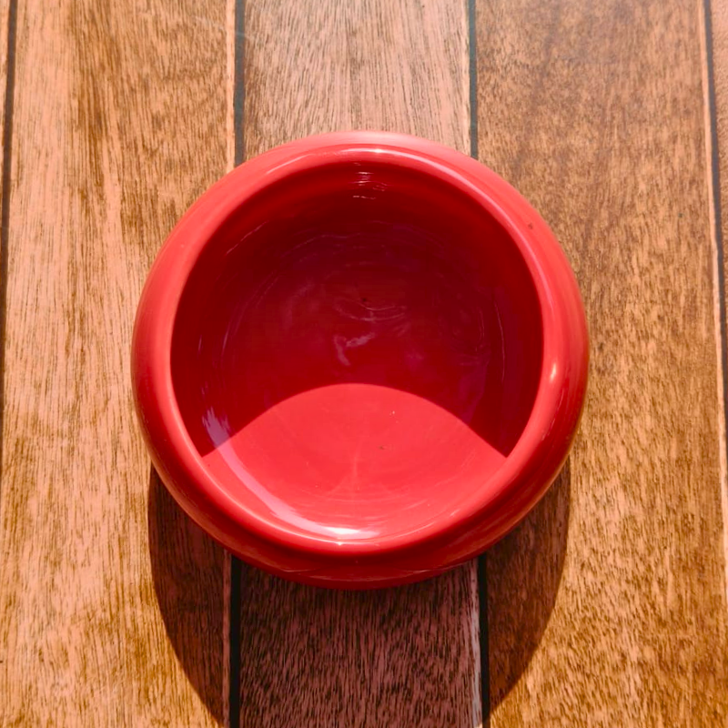 - Handcrafted ceramic red snack bowl with glossy finish.