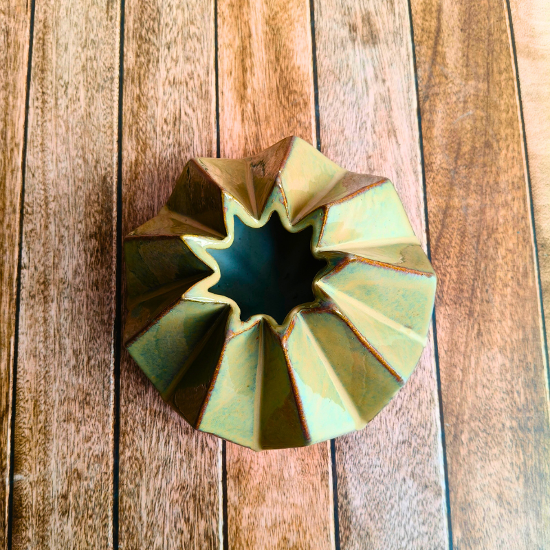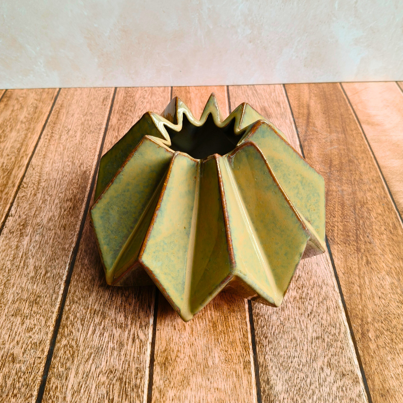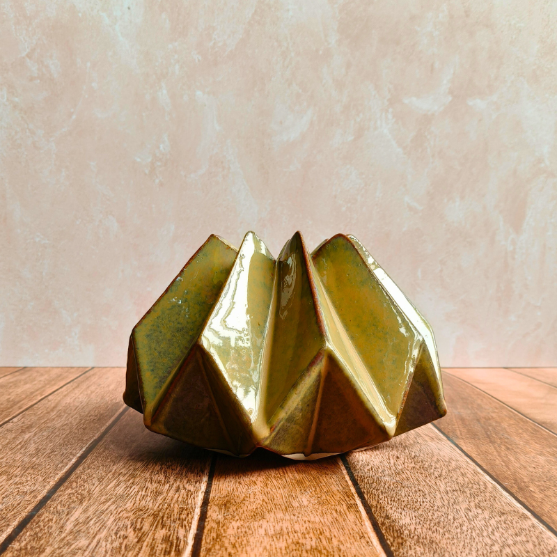 Elevate your living spaces with our Ceramic Moss Green Center Piece, a sculptural accent inspired by nature’s calm hues. Handcrafted in durable stoneware ceramic, this Pinterest-worthy centerpiece features a soothing moss green tone and a faceted, contemporary form that instantly draws the eye. Perfect for coffee tables, dining tables, consoles, or shelves, it blends effortlessly with boho-chic, modern, and earthy interiors. Handmade in India by skilled artisans, each piece carries subtle variations that make it truly one of a kind. Ideal for everyday styling or thoughtful gifting, this ceramic centerpiece adds warmth, texture, and timeless charm to your home.