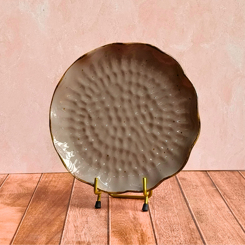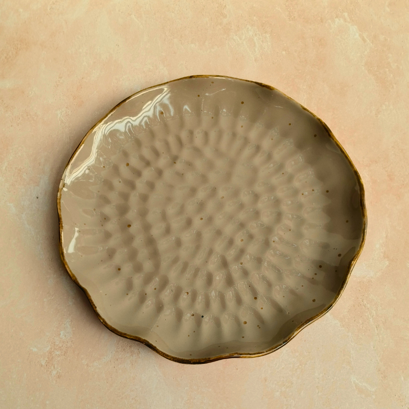 The Ceramic Pebble Plate brings an organic, sculptural charm to your table. Handcrafted in ceramic with a soft gloss finish, its textured, pebble-like surface adds depth and character to everyday dining. Each plate is handmade in India, making every piece subtly unique. Durable yet elegant, this Pinterest-worthy plate is perfect for serving snacks, desserts, or small meals, effortlessly elevating your table setting. Designed for everyday use and aesthetic lovers, it blends functionality with timeless design, because even the simplest moments deserve beautiful serveware.