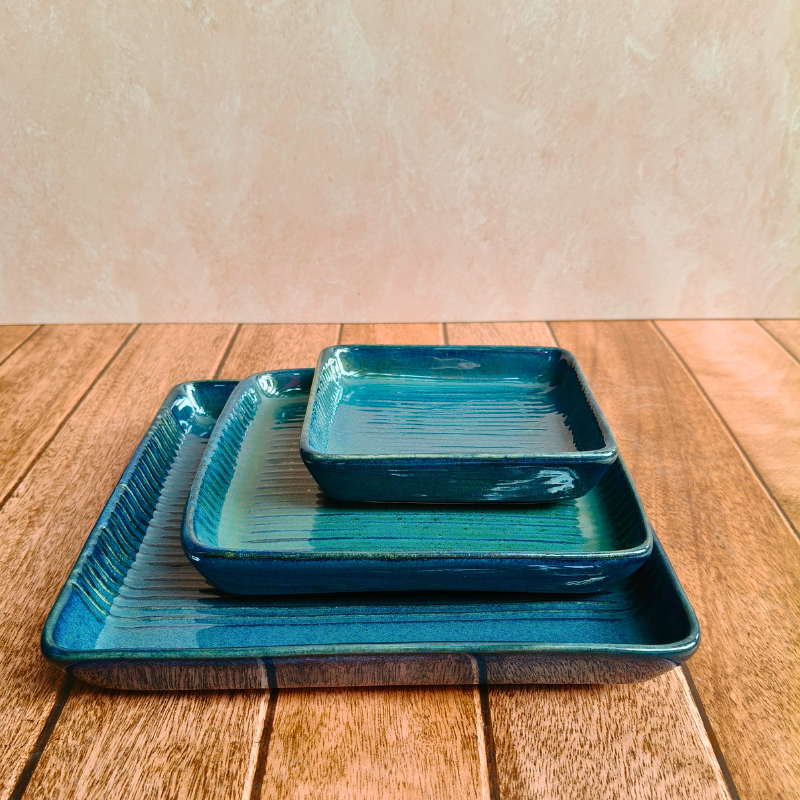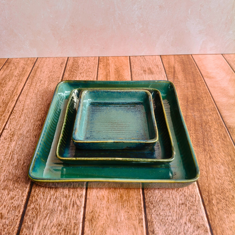 Elevate your hosting and everyday dining with this beautifully handcrafted ceramic platter set of 3, designed to blend elegance with everyday functionality. Finished with a stunning triple-fired glaze, each platter showcases rich tones and a smooth, glossy texture that feels truly Pinterest-worthy. Perfect for serving snacks, desserts, appetisers, or even as a stylish décor base, this durable, handmade-in-India platter set is ideal for both daily use and special occasions. A thoughtful choice for gifting, this set seamlessly fits into modern, aesthetic homes that love timeless craftsmanship.