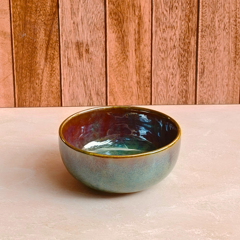 - Handcrafted ceramic snack bowl.