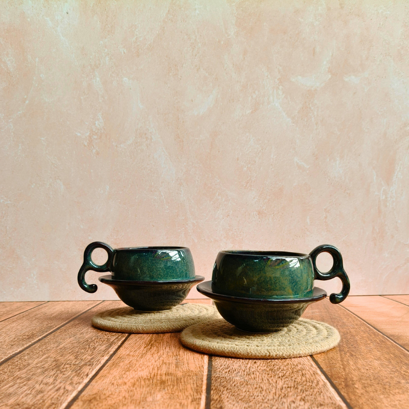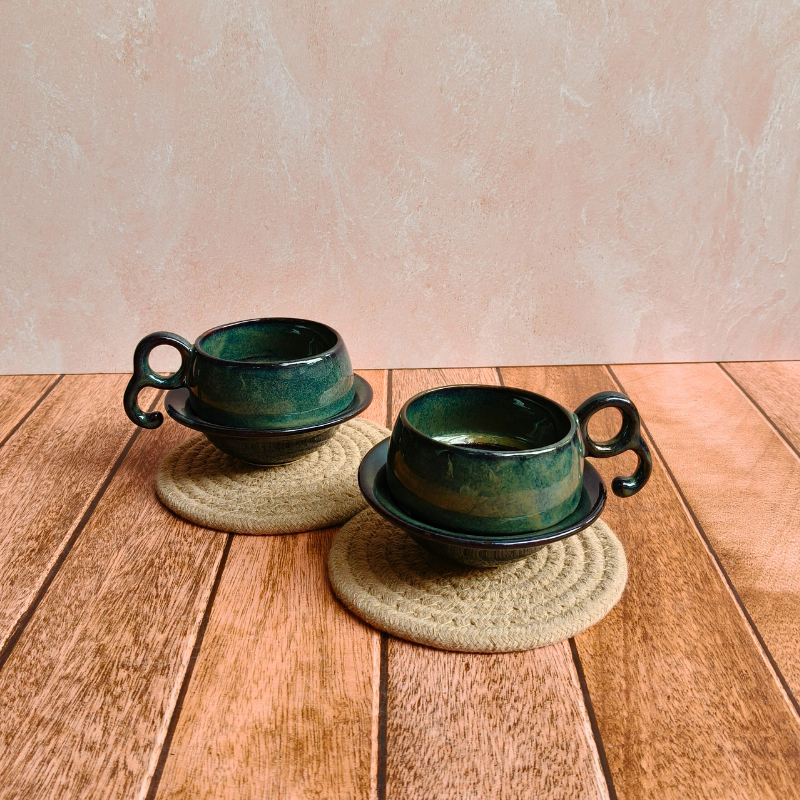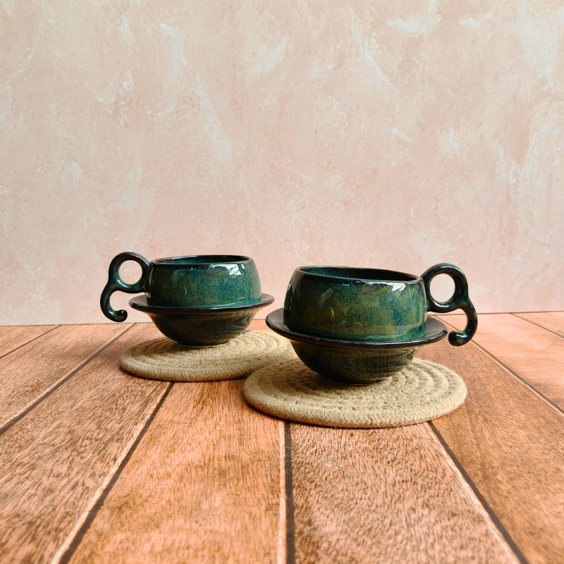 Crafted from durable, sustainable ceramic, the minimalist design in smoky emerald color pairs beautifully with all interior styles, especially cozy corners, Pinterest-worthy breakfast nooks, or soft, summer decor vibes.