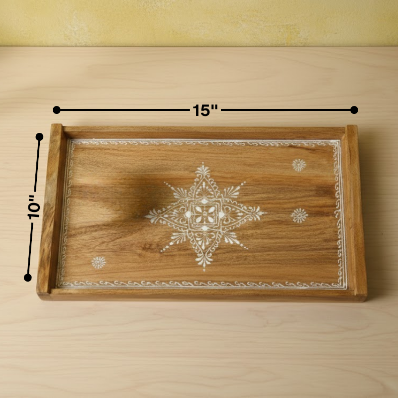 - Handcrafted wooden Lippan art rectangle tray.